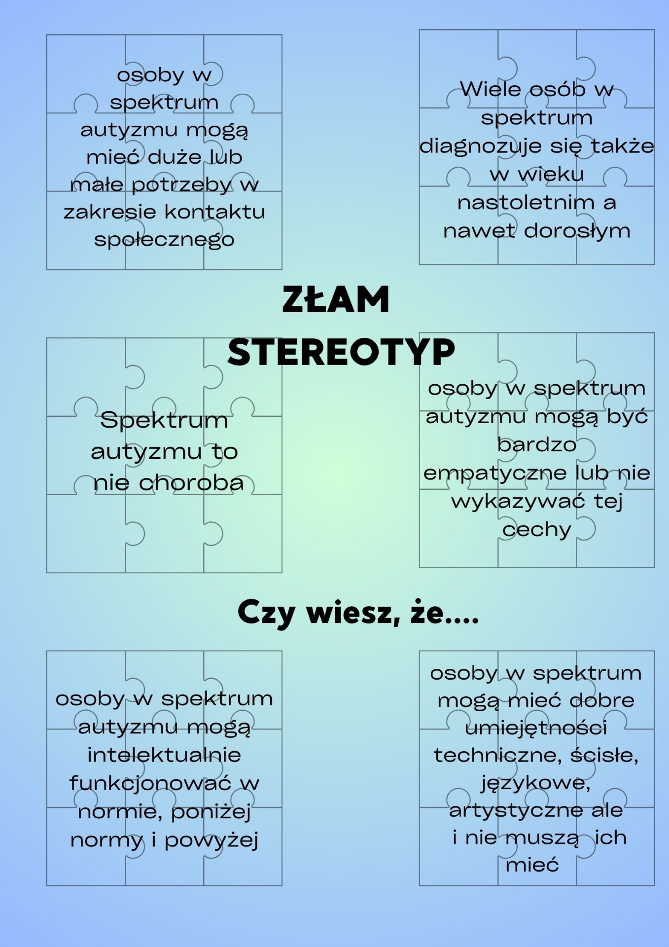 Puzzle symbolizują, że świat osób z autyzmem jest jak układanka, którą będą układać do końca życia.